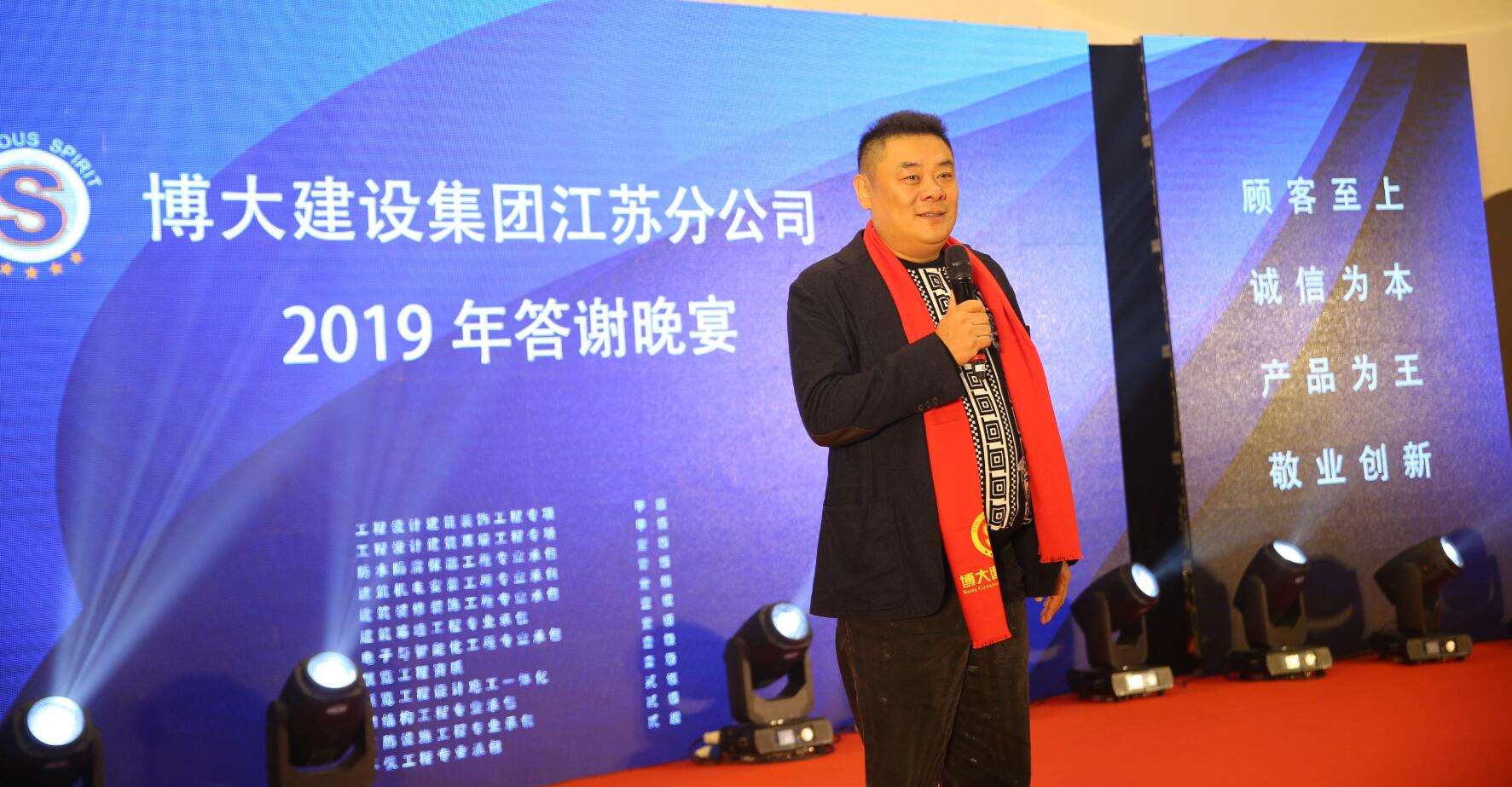 宴會上,董事長徐凱宏代表博大建設集團董事會宣布:任命謝方先生為集團董事、副總裁、江蘇分公司總經理。同時,向行業介紹了集團總部為江蘇分公司量身定制的五大“特權”政策,全力支持其拓展江蘇市場,期望江蘇分公司成為博大戰略改革的模范試驗區,實現集團與合伙人之間的共贏。